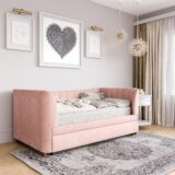 Take your child’s bedroom decor to the next level of sophistication and charm with the Little Seeds Valentina Pink Upholstered Daybed with Trundle. This elegant and whimsical piece is the perfect blend of style, functionality, and comfort, designed with both you and your little one in mind. Inspired by vintage glam aesthetics, the daybed is fully upholstered in a soft pink faux velvet fabric that’s both visually appealing and luxuriously soft to the touch. The vertically stitched tufted design adds a refined texture to the backrest and sides, while the subtly curved edges offer a graceful silhouette that works beautifully in a variety of bedroom themes—from fairy tale to modern chic.